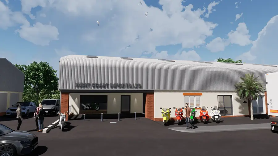 Inspired Partnership Ltd were appointed to provide Architectural Services to form a two storey extension to an existing motorcycle workshop in Minehead, Somerset, allowing our client more space to operate their business from.